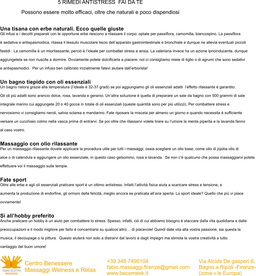 NOVITA’ ASSOLUTA AL CENTRO  FABIO SCOTINI MASSAGGI a FIRENZE